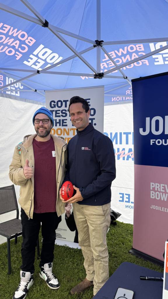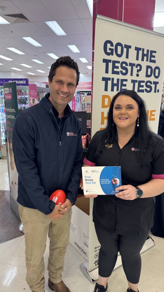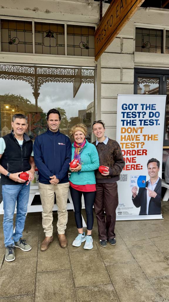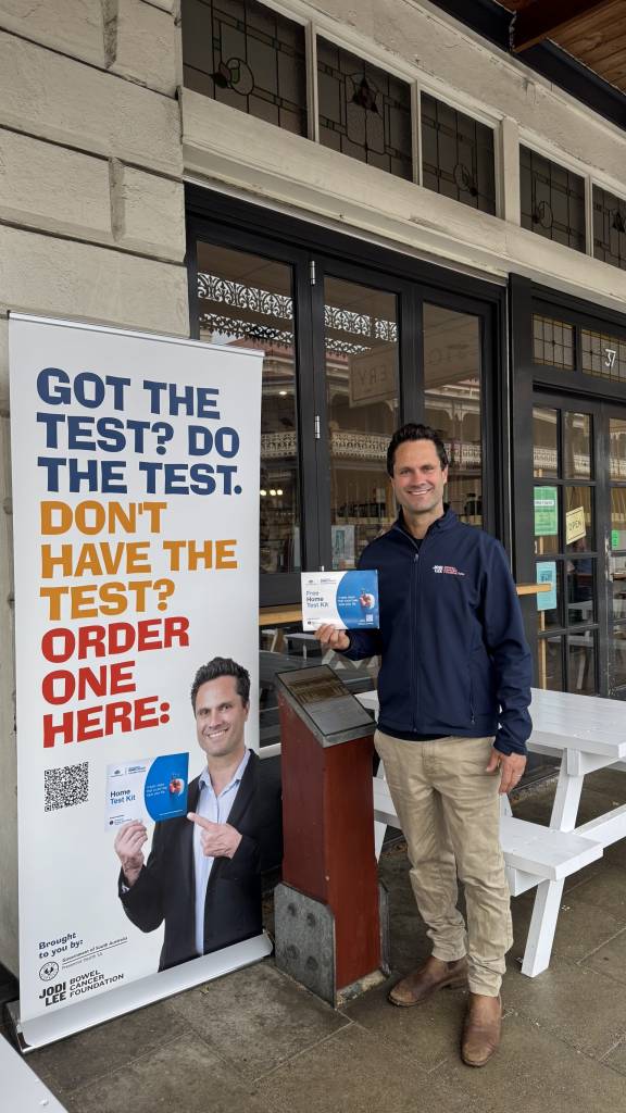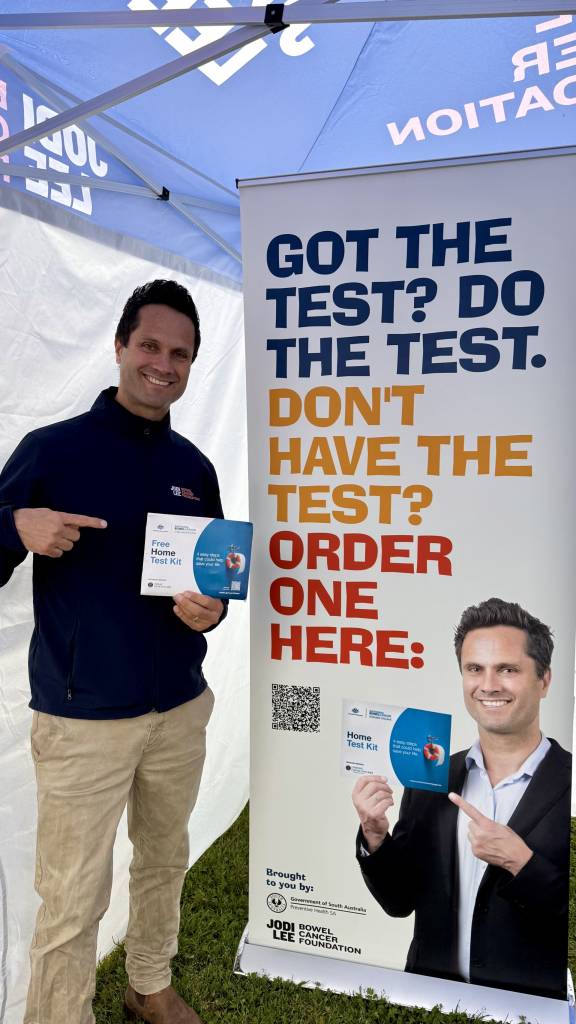 Jodi Lee Bowel Cancer Foundation Ambassador, Gavin Wanganeen and the Talking Sh!t team spent four days in Mount Gambier, encouraging 50+ year olds to complete their bowel screening tests, and encouraging 45-49 year old’s to opt-in to the National Bowel Cancer Screening Program (NBCSP).